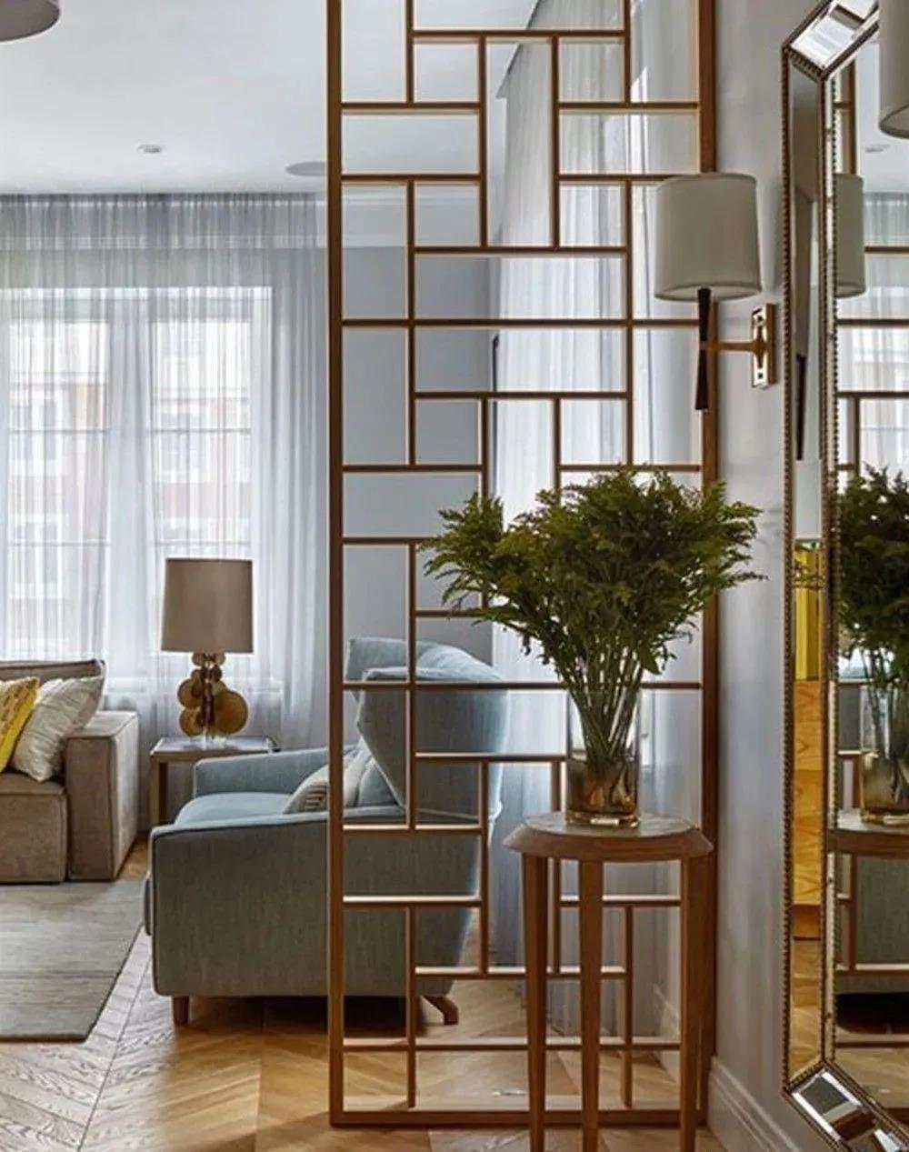 一个柜子、一张沙发都可以成为隔断,在小户型中,往往会利用柜子来做隔断,玄关做个柜子不仅充当鞋柜还能作为隔断;在横厅户型中,用沙发作为隔断区分客餐厅空间,或者做个书柜、酒柜作为隔断,下半部分实体柜,上半部分镂空置物架,即美观又能保持空间的通透性。