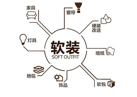 软装,即软装修、软装饰。相对于传统“硬装修”的室内装饰形式。即在居室完成装修之后进行的利用可更换,可更新的布艺、窗帘、绿植、铁艺、挂画、挂毯等进行的二次装饰。