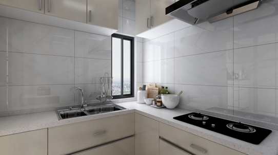 现代简约厨房采用的是白色的亮面砖,橱柜门板则选用亮面烤漆门板,整体增加厨房的采光,看起来干净利索,整洁,虽然第一眼不会给人很惊艳的感觉,但是越看越耐看,墙壁上的柜子使整个厨房干净整洁,在这样的厨房里面烹饪,给人一种很安静的感觉,做出来的饭菜也一样美味,可口。