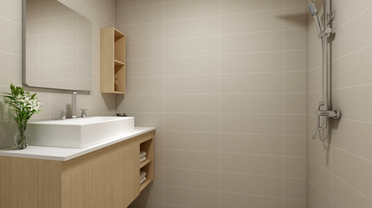 很多时候,由于房间户型设计的局限性,卫生间的面积比较狭小,但科学合理的设计,可以让卫生间看起来明亮宽敞且使用,虽然卫生间狭小但是不要忽略卫生间这个小地方,他关系着全家人的健康以及生活质量,卫生间设计要注意防水,防潮,通风,美观和易清洁同样重要,卫生间里面采用悬空式浴室柜,这样比较好清洁大理,马桶后面加上花片点缀,为整个卫生间增添了活力。