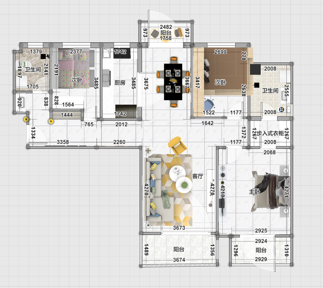 该户型卧室空间比较规整,卧室,客厅和阳台空间足够用,采光性很好。