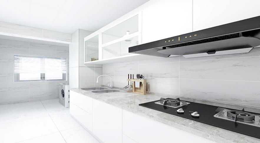 简约风格厨房设计特点,尽可能不用装饰和取消多余的东西,强调形式应更多地服务于功能。厨房里除了保存最基本的贮藏、洗刷、烹饪等功用外,已很难找到别的不必要的东西,刀叉等有用东西也只是满意主妇的最基本需要,而不是多得让人分不清怎么运用的各种东西。精约人士眼里繁琐的功用被省掉,底柜的规划也摒弃传统竖立在地上的方式,水、电、气的管线都被隐藏在墙内。体现时代特征为主,没有过分的装饰,一切从功能出发,讲究造型比例适度、空间结构图明确美观,强调外观的明快、简洁。体现了现代生活快节奏、简约和实用,但又富有朝气的生活气息。