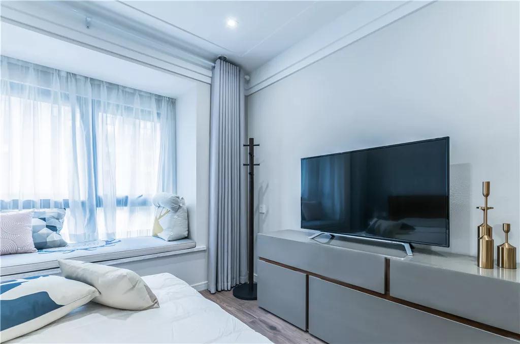 床尾电视柜柜门做了不规则的划分,收纳的区域性也更为明确。