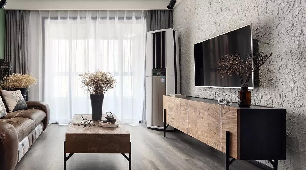 电视背景墙采用了腻子基层拉毛处理,可以不加修饰的墙面纹理有别于一般墙面的光影层次,简单粗犷之感油然而生,展现了工业风特有的雅痞质感。