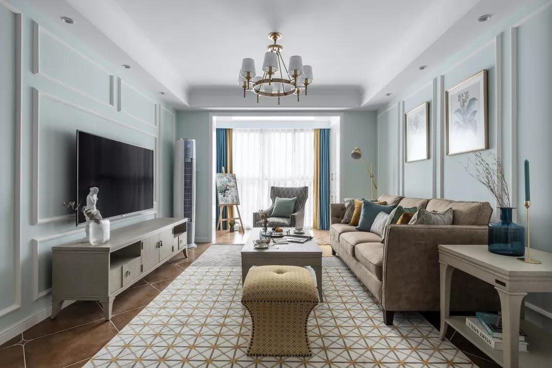 客厅以淡蓝色与白色为基调,视线所及明亮而温和,营造清新浪漫的舒适感受。