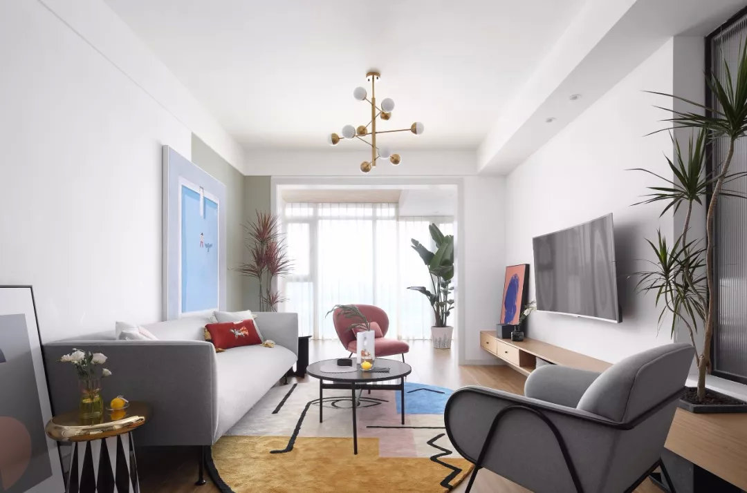 今天分享的是一套建筑面积100㎡简约风二居室案例,房子整体以白色为主,通过各种优雅、浪漫的软装来提升整个空间的格调感和舒适度,而两个卧室却又选择了独特的颜色搭配方案,让这个家多出了一些小清新感。